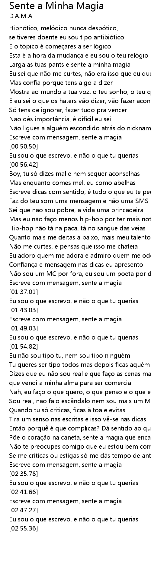 | [01:39.44] | Eu sou o que escrevo, e n o o que tu querias |