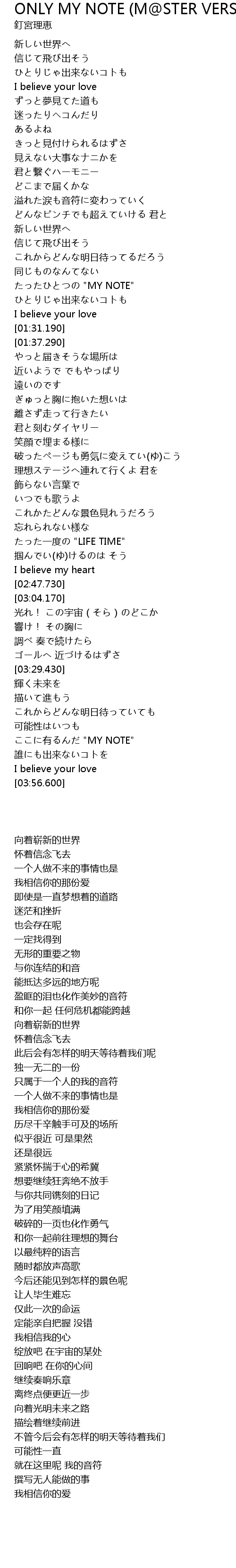 | [03:44.800] | ここに有るんだ "MY NOTE" |