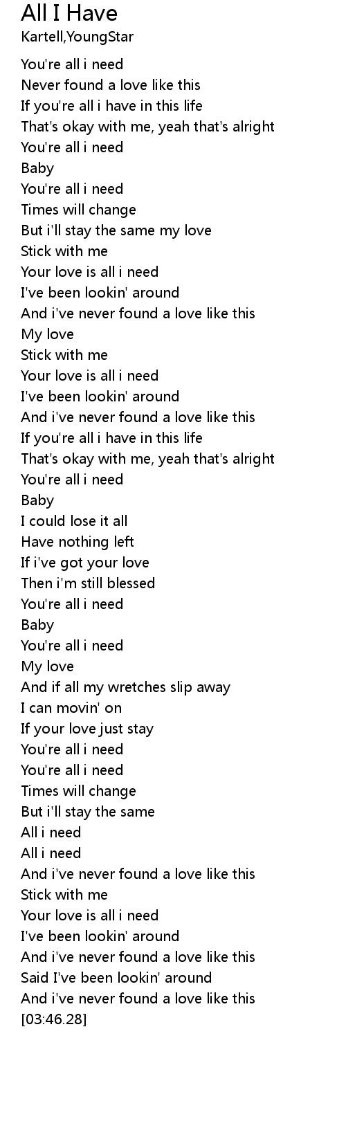 | [03:20.52] | Your love is all i need |
