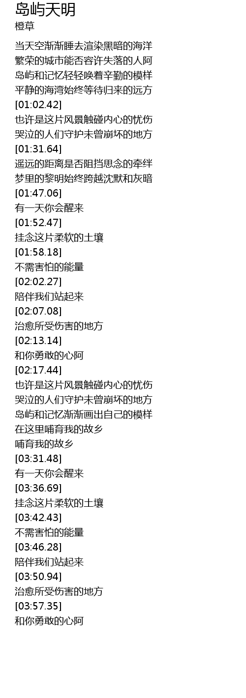 | [03:16.43] | 岛屿和记忆渐渐画出自己的模样 |
