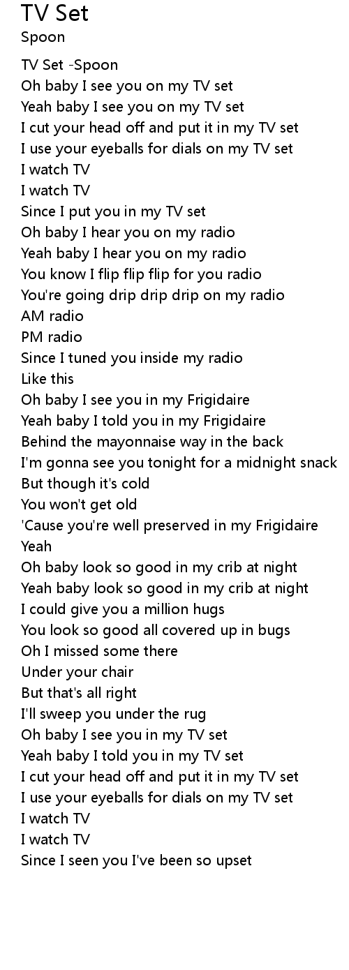 | [02:45.784] | Yeah baby I told you in my TV set |