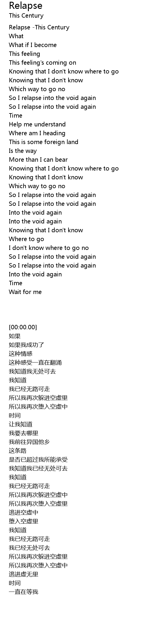 So I relapse into the void again |