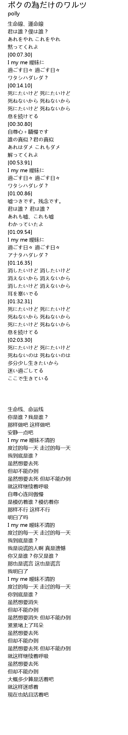 | [00:15.06] | 死にたいけど 死にたいけど |