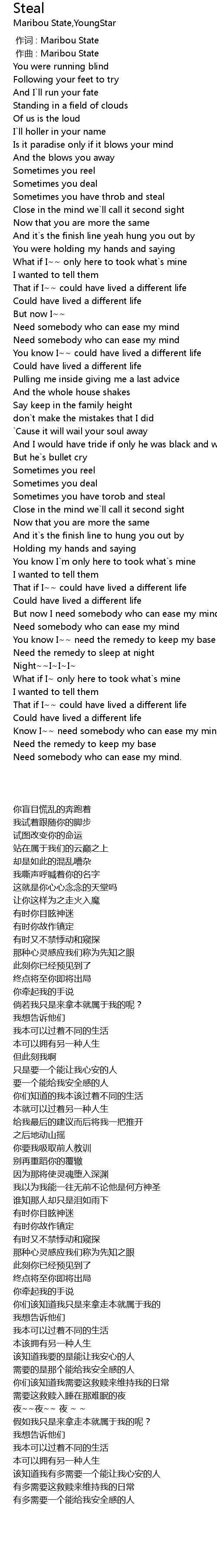 | [02:30.05] | Need somebody who can ease my mind |