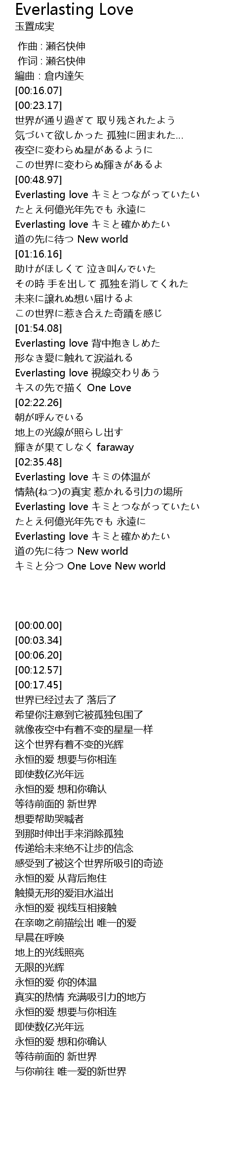 | [01:57.14] | Everlasting love 背中抱きしめた |