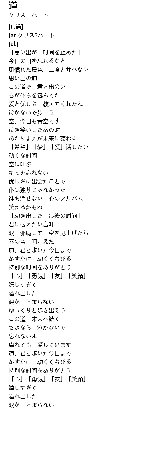 | [03:04.98] | 「心」「勇気」「友」「笑顔」 |