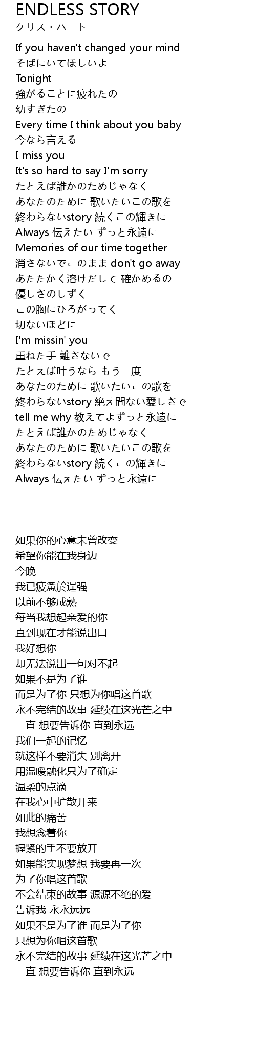 | [02:52.44] | 終わらないstory 絶え間ない愛しさで |