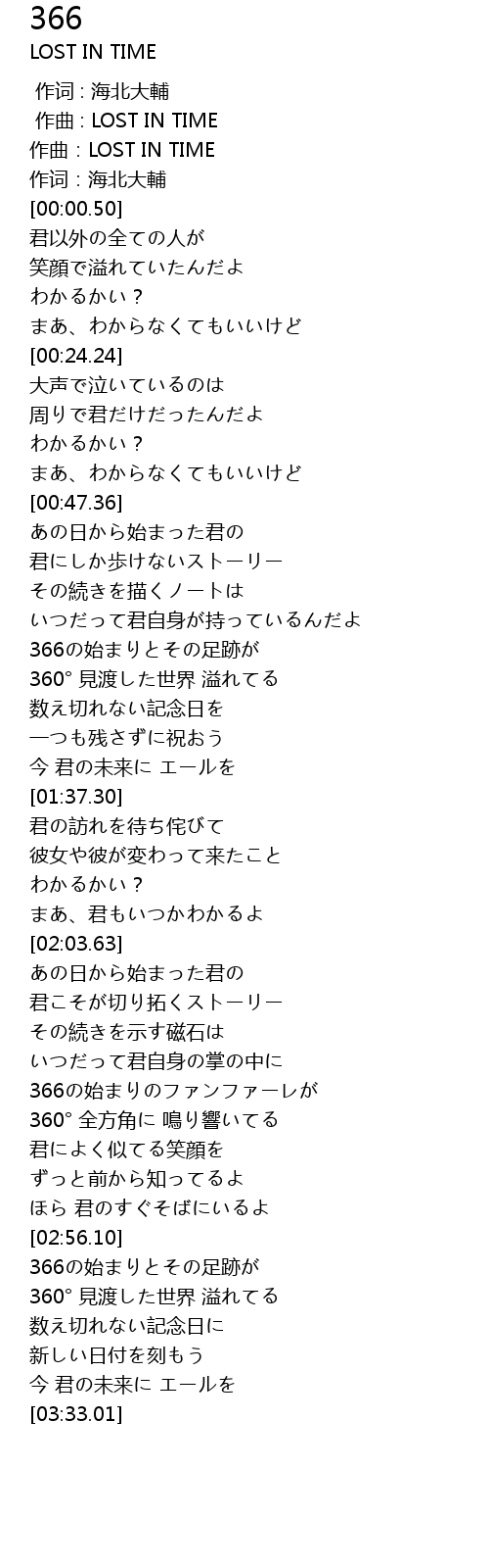 | [03:03.36] | 366の始まりとその足跡が |