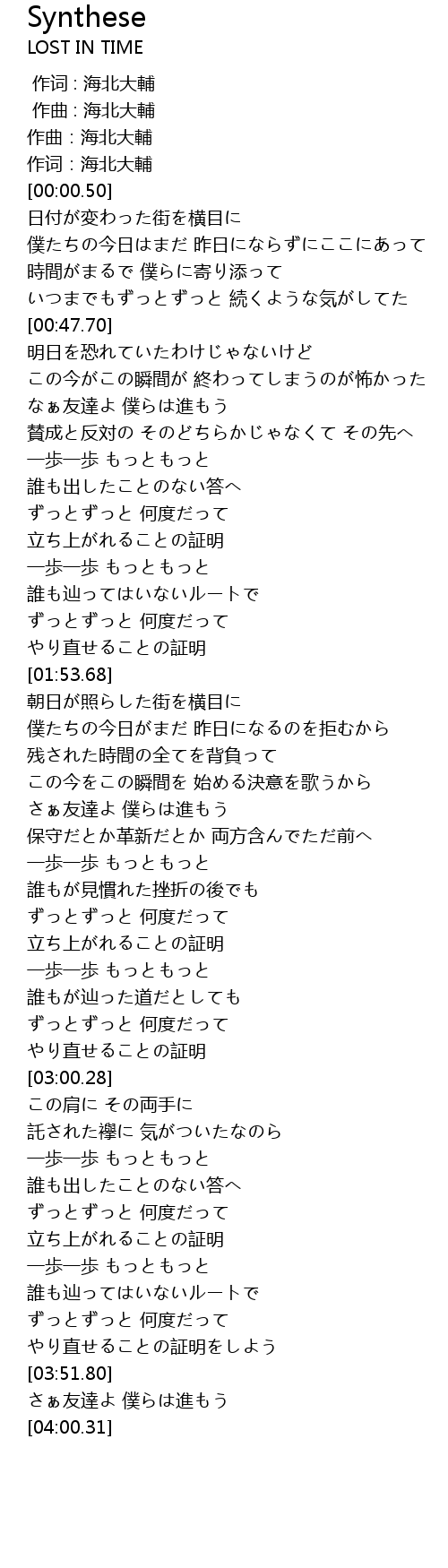 | [02:31.70] | 保守だとか革新だとか 両方含んでただ前へ |