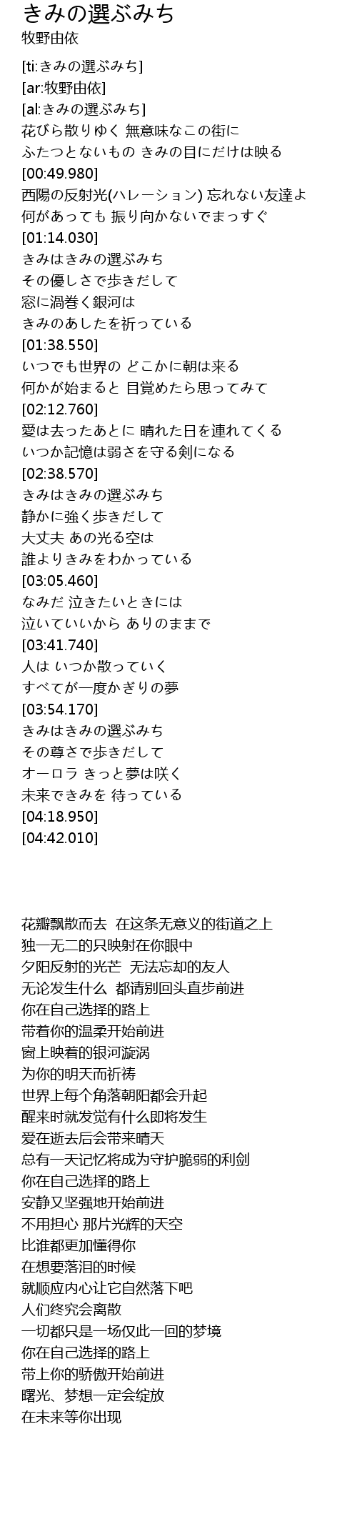 | [00:50.540] | 西陽の反射光(ハレーション) 忘れない友達よ |