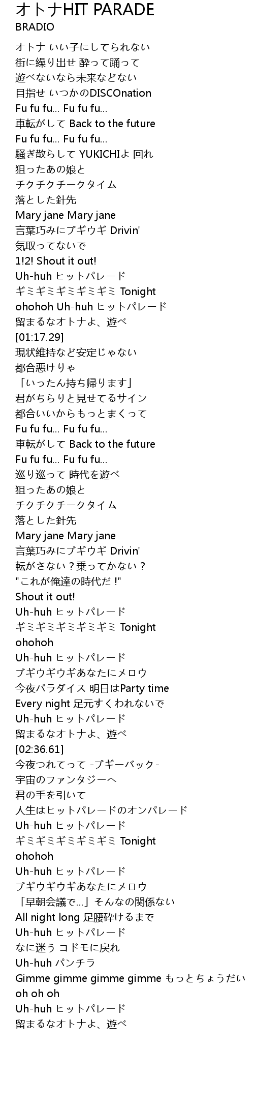 | [02:18.11] | Uh-huh ヒットパレード |