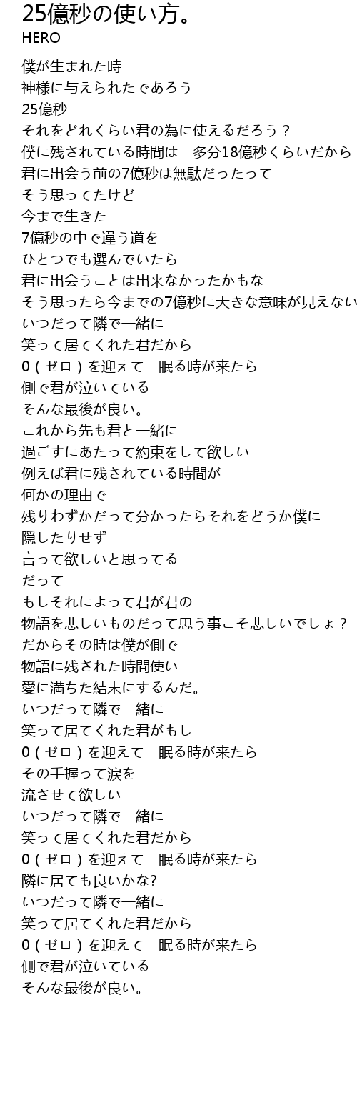 | [00:10.48] | 僕に残されている時間は 多分18億秒くらいだから |