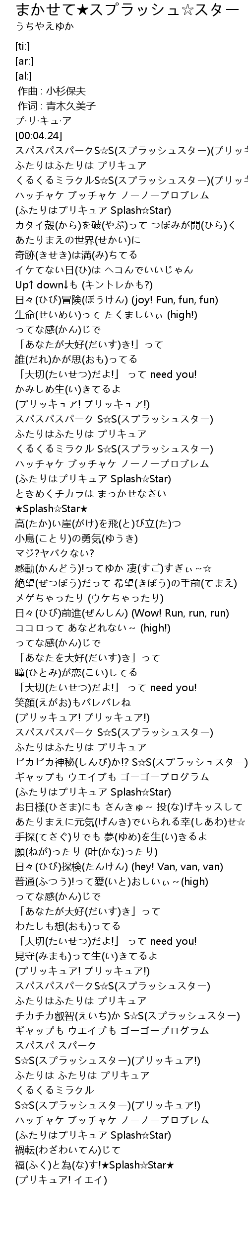 | [03:23.93] | スパスパ スパーク S☆S(スプラッシュスター)(プリッキュア!) |