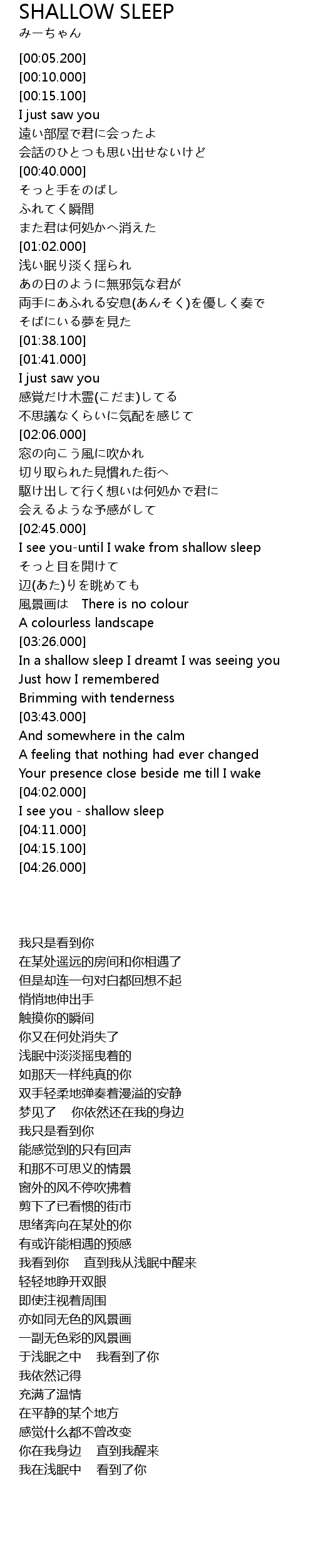 | [04:03.500] | I see you - shallow sleep |