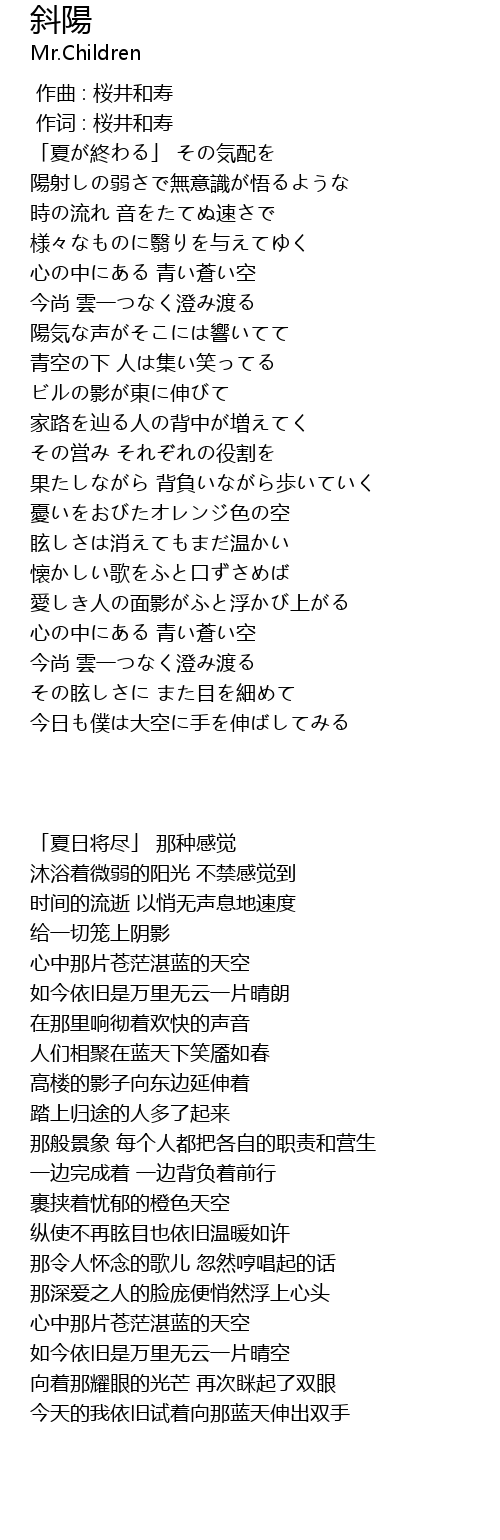 | Song | 斜陽 |