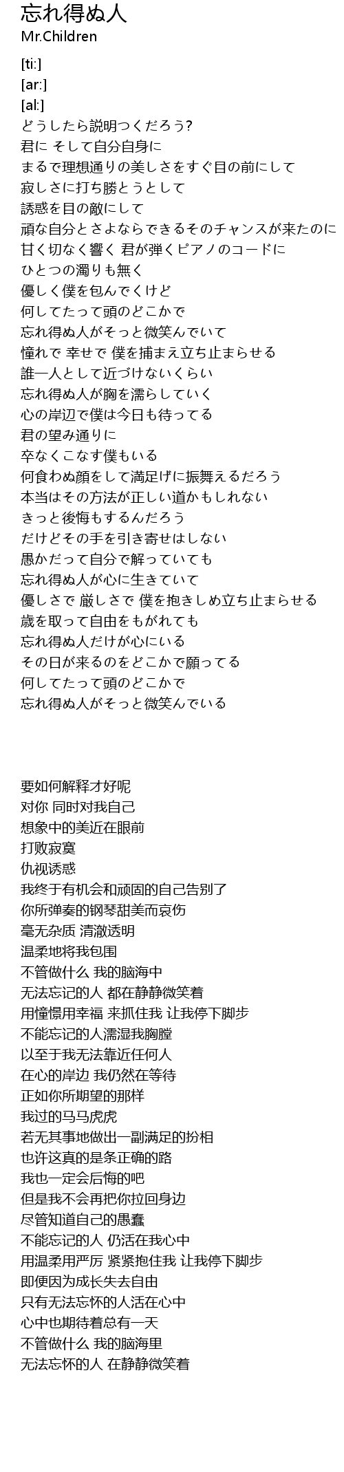 | [04:45.29] | 忘れ得ぬ人がそっと微笑んでいる |