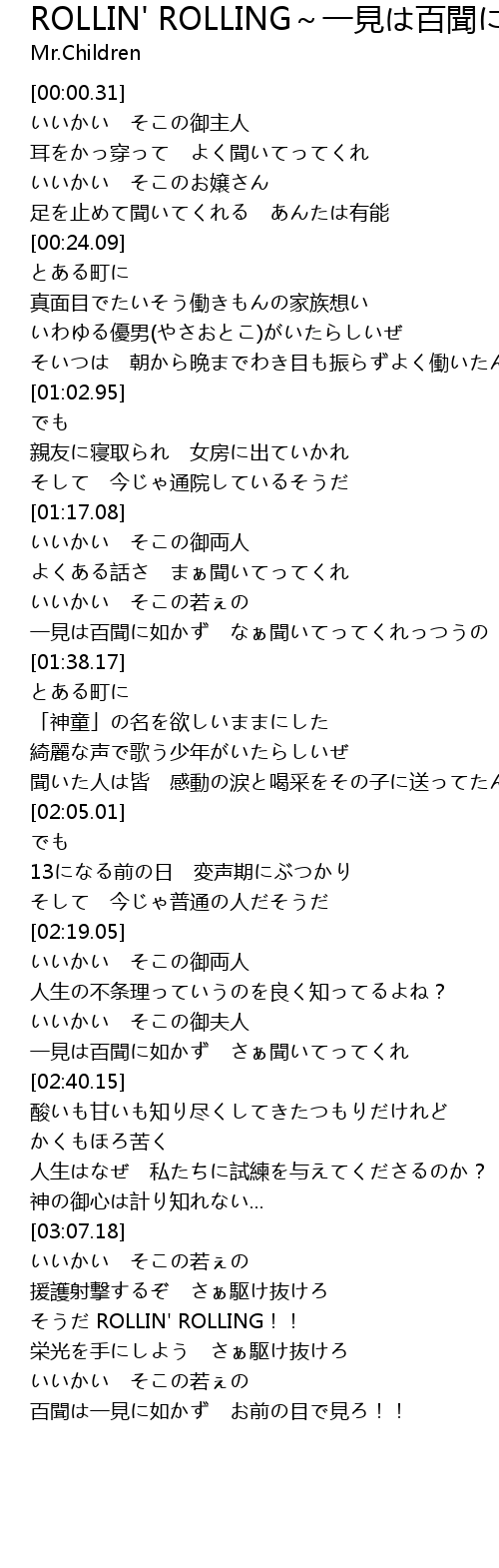 | [01:33.17] | 一見は百聞に如かず なぁ聞いてってくれっつうの |