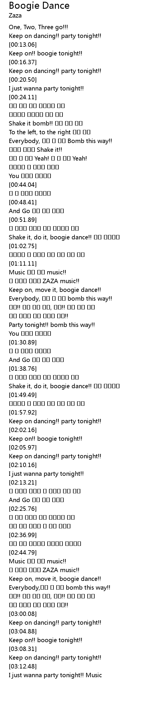 | [00:13.87] | Keep on!! boogie tonight!! |