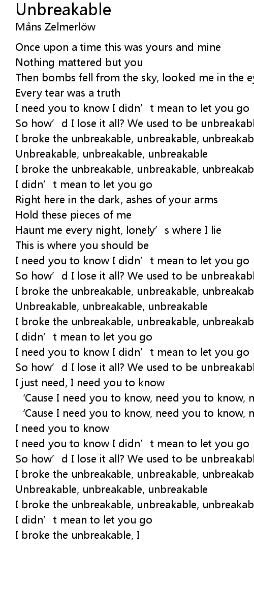 | [00:52.94] | Unbreakable, unbreakable, unbreakable |