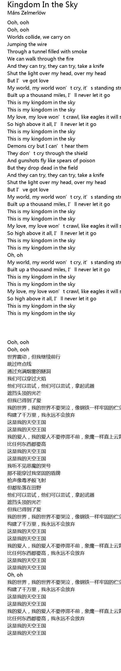 | [00:52.15] | My world, my world won' t cry, it' s standing strong like iron |