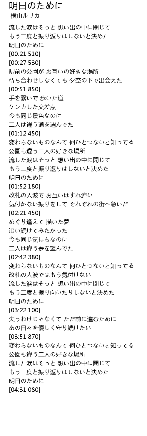 | [03:00.510] | 流した涙はそっと 想い出の中に閉じて |