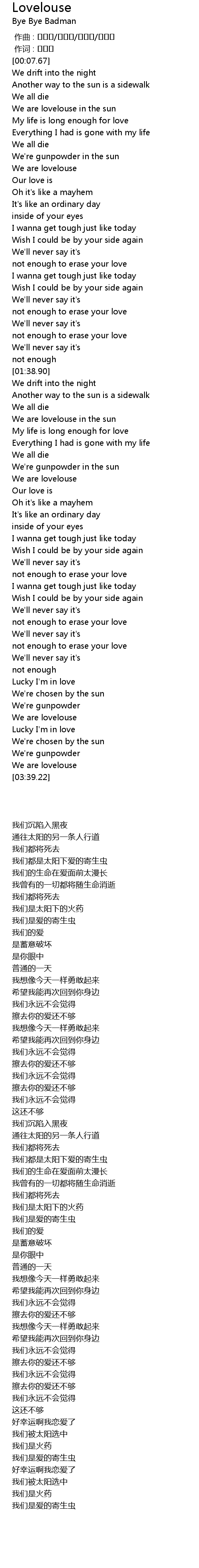 | [00:34.17] | We are lovelouse in the sun |