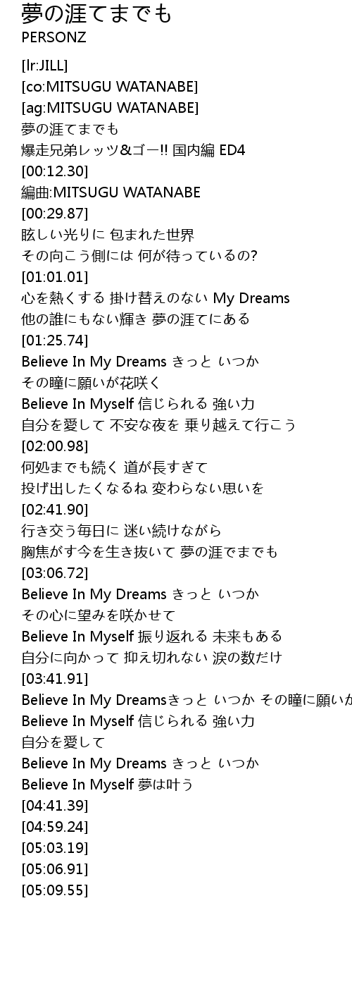 | [04:03.18] | Believe In My Dreamsきっと いつか その瞳に願いが花咲く |