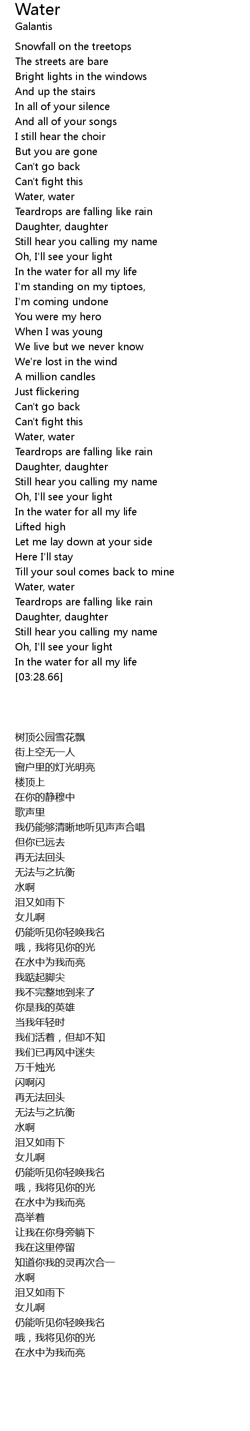 | [03:23.60] | In the water for all my life |