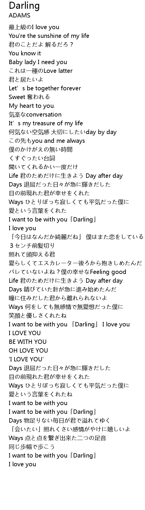 | [03:10.33] | I want to be with you 「Darling」 I love you |