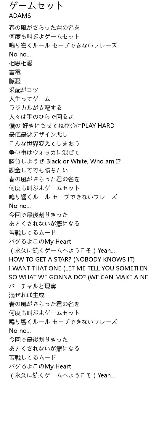| Song | ゲームセット |