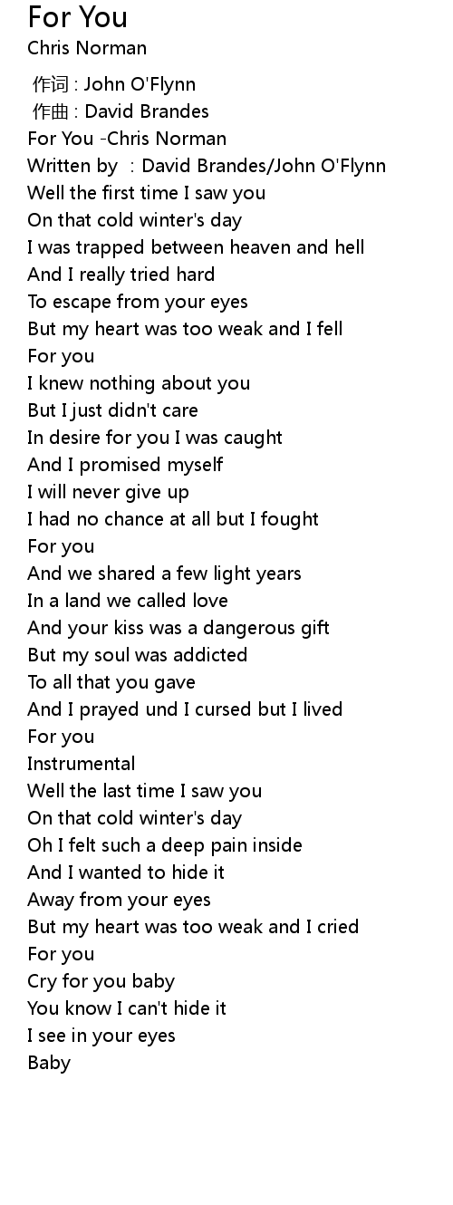 | [00:01.664] | For You -Chris Norman |