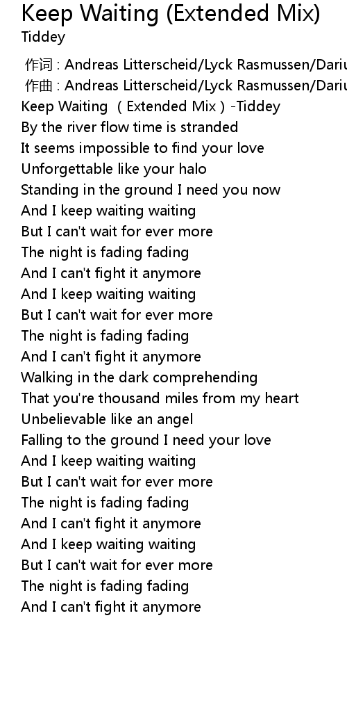 | [00:00.510] | Keep Waiting Extended Mix Tiddey |