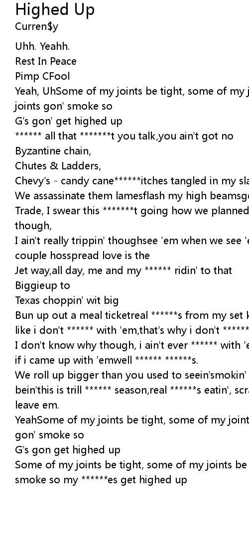 YeahSome of my joints be tight, some of my joints be ****** upbut all my joints gon' smoke so |