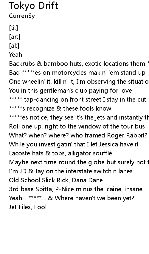 | [00:45.50] | Backrubs & bamboo huts, exotic locations them *****s ain't us |