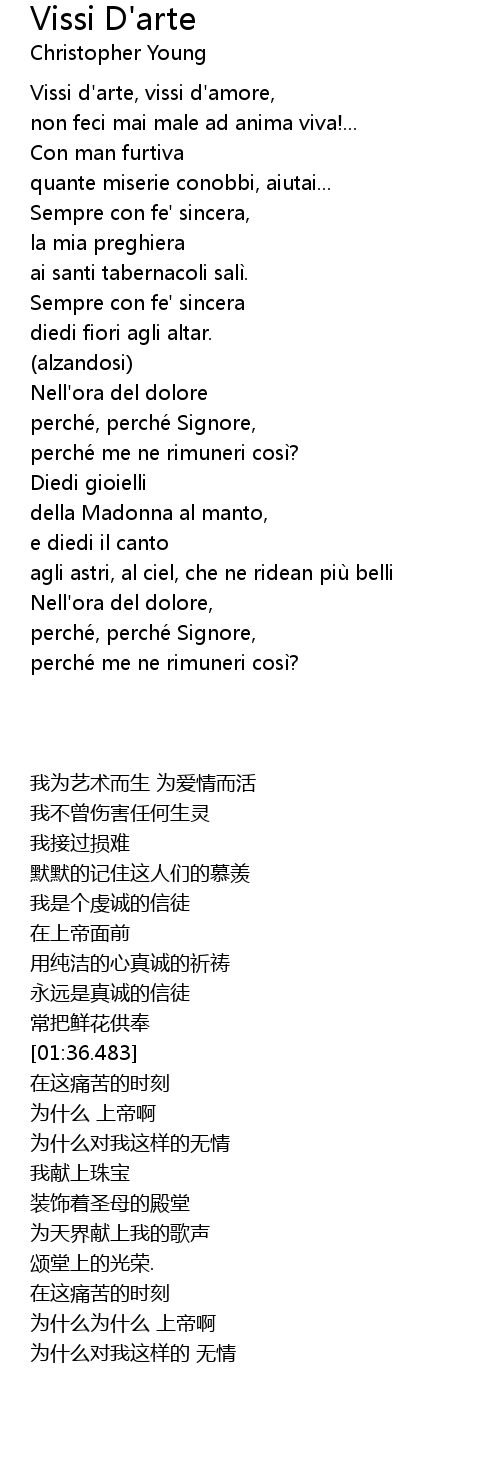 | [00:02.286] | Vissi d' arte, vissi d' amore, |