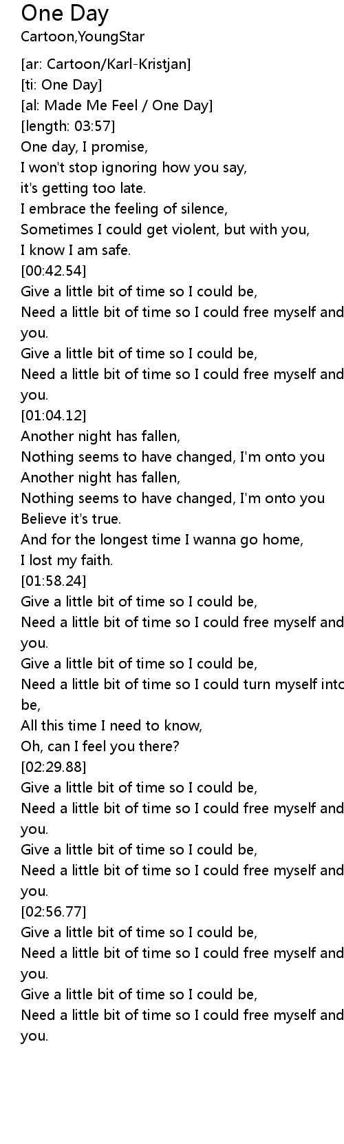 | [00:55.73] | Give a little bit of time so I could be, |