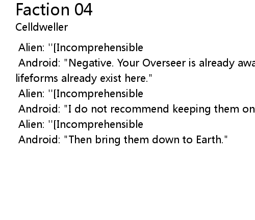 | [00:22.337] | Android: "Negative. Your Overseer is already aware of that multiple lifeforms already exist here." |