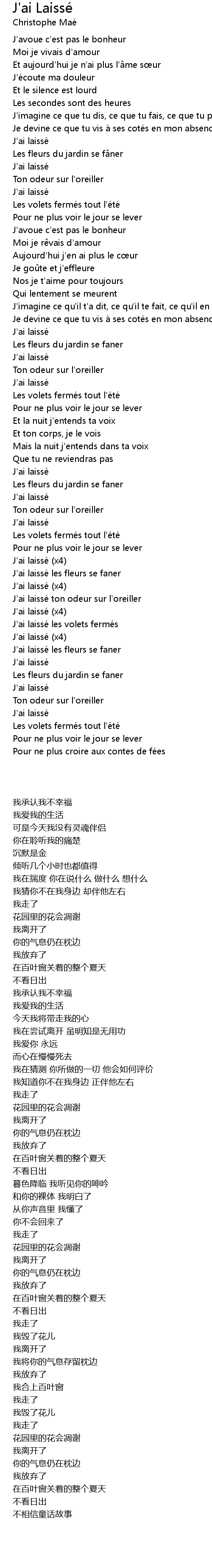 | [02:52.44] | J' ai laisse les fleurs se faner |
