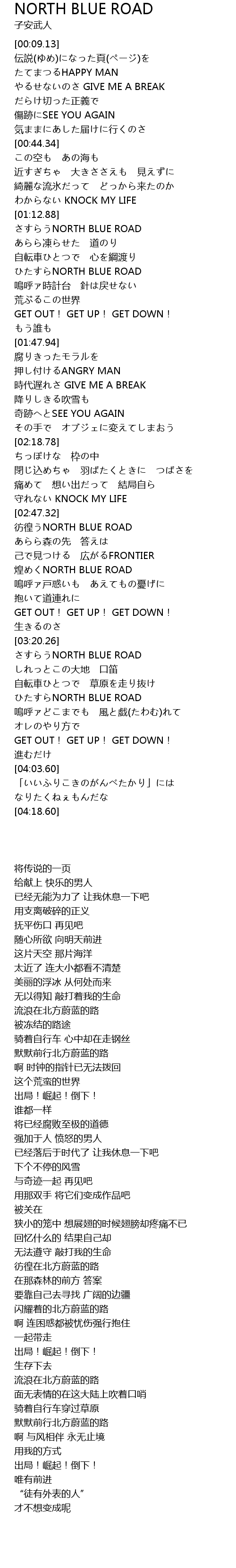 | [03:44.84] | ひたすらNORTH BLUE ROAD |