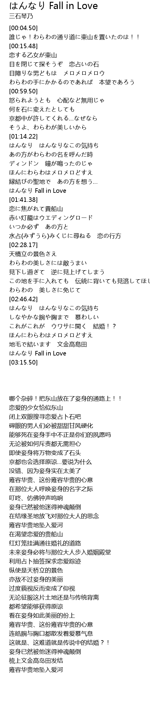 | [01:36.21] | はんなり Fall in Love |