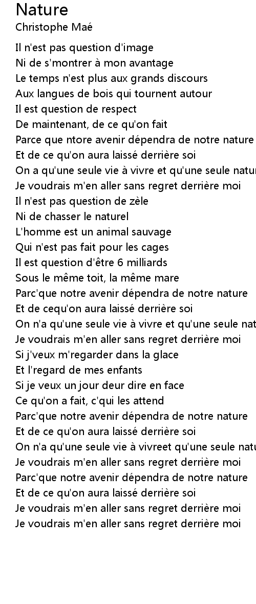 | On n'a qu'une seule vie à vivreet qu'une seule nature | |