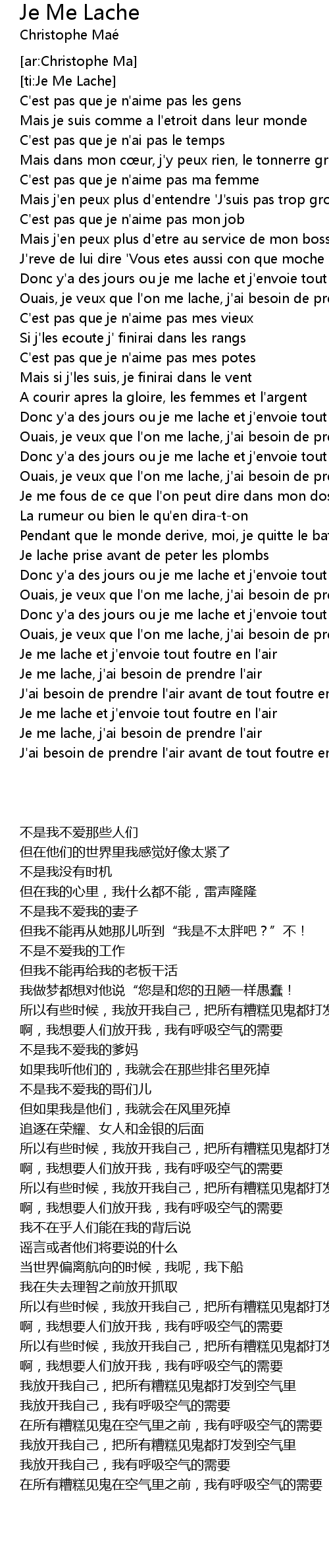 | [02:50.090] | Je me lache, j' ai besoin de prendre l' air |