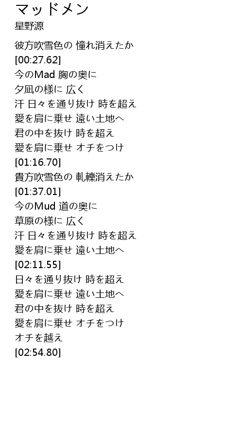| [01:42.65] | 今のMud 道の奥に |