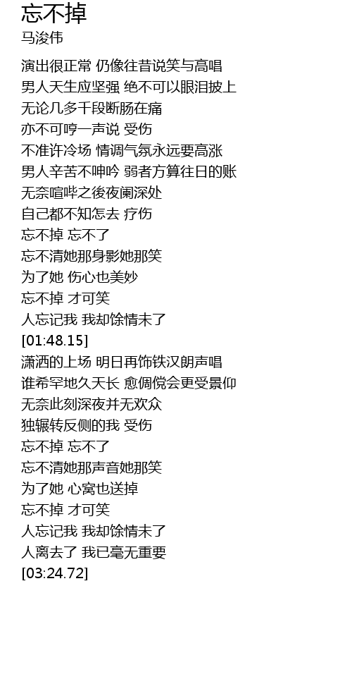 | [01:40.22] | 人忘记我 我却馀情未了 |