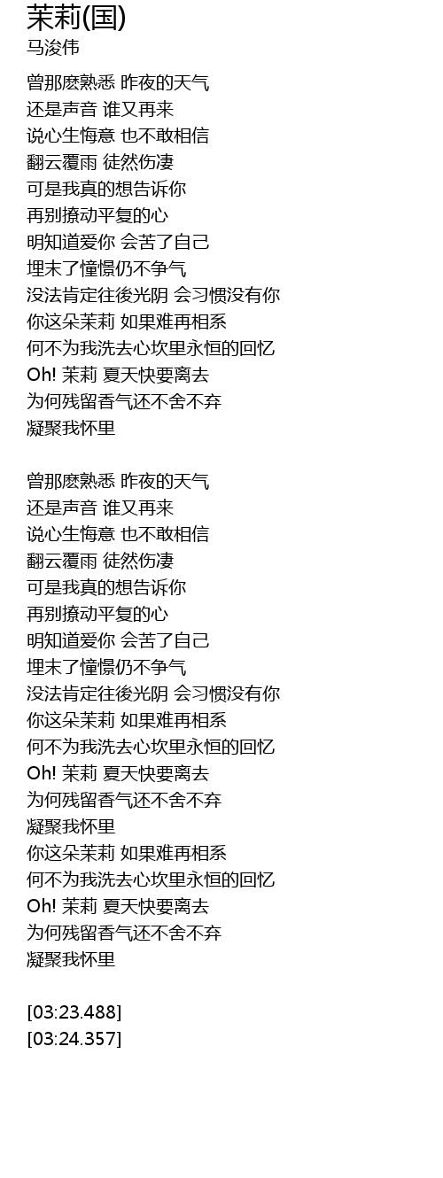 | [03:05.788] | Oh! 茉莉 夏天快要离去 |