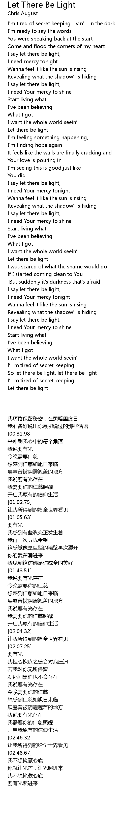 | [02:54.44] | So let there be light, let there be light |