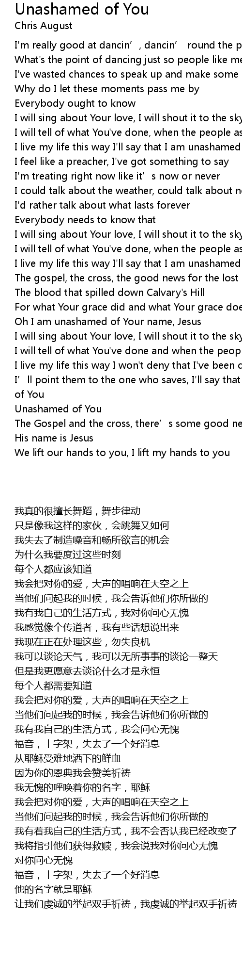 | [00:45.12] | I live my life this way I' ll say that I am unashamed of You |