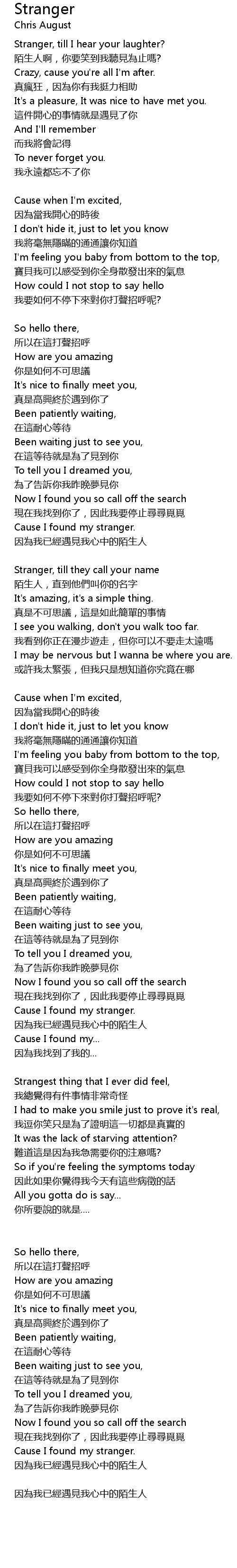 | Cause I found my stranger [x2] | |