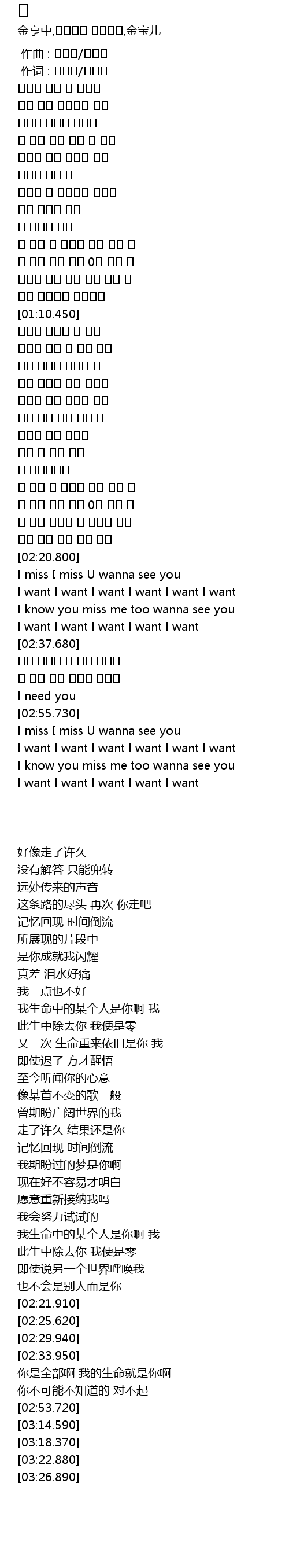 | [02:21.910] | I miss I miss U wanna see you |