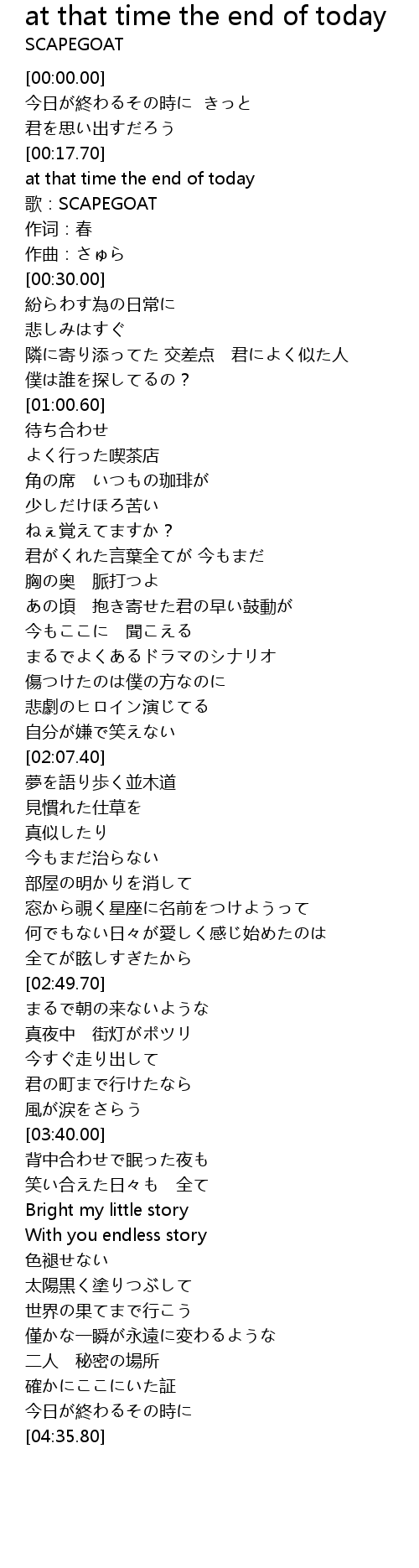 | [04:04.10] | 太陽黒く塗りつぶして |